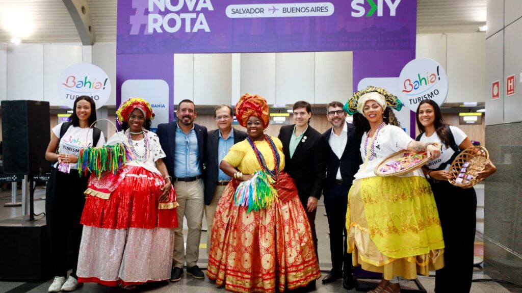 A partir desta quarta-feira (2), a distância entre a Bahia e a Argentina será encurtada. O Governo do Estado, por meio da Secretaria de Turismo (Setur-BA), e a Sky Airline lançaram oficialmente a rota Salvador – Buenos Aires – Salvador, primeira linha direta operada pela companhia entre os dois destinos. A cerimônia foi realizada no aeroporto da capital baiana, marcando o início das operações. O receptivo turístico incluiu apresentação cultural e distribuição de presentes aos passageiros.