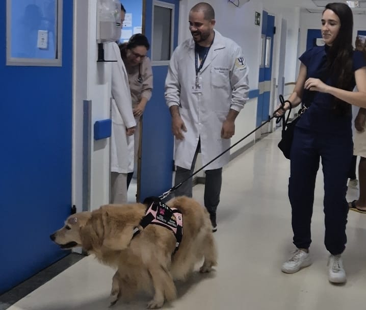 Acompanhada de sua tutora, Valentina Escobar, Lola levou momentos de descontração, carinho e alegria para as crianças atendidas na unidade. Com seu jeito dócil e brincalhão, ela conquistou não apenas os pequenos pacientes, mas também familiares e profissionais de saúde que acompanhavam as atividades. Entre sorrisos, abraços e muitas fotos, a presença da cadelinha transformou a rotina hospitalar em um momento de leveza e afeto.