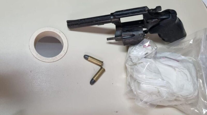 Com o criminoso, que possuía mandado de prisão, foram apreendidos uma pistola, um revólver, carregador, munições e porções de entorpecentes.
