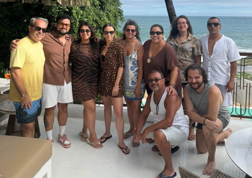 No beach club e restaurante, um dos espaços mais disputados da alta estação na capital baiana, a atriz foi recebida pelo promoter Ginno Larry e curtiu não só a deliciosa gastronomia mediterrânea da casa, como a bela vista da Praia do Buracão, ao lado da equipe da peça.