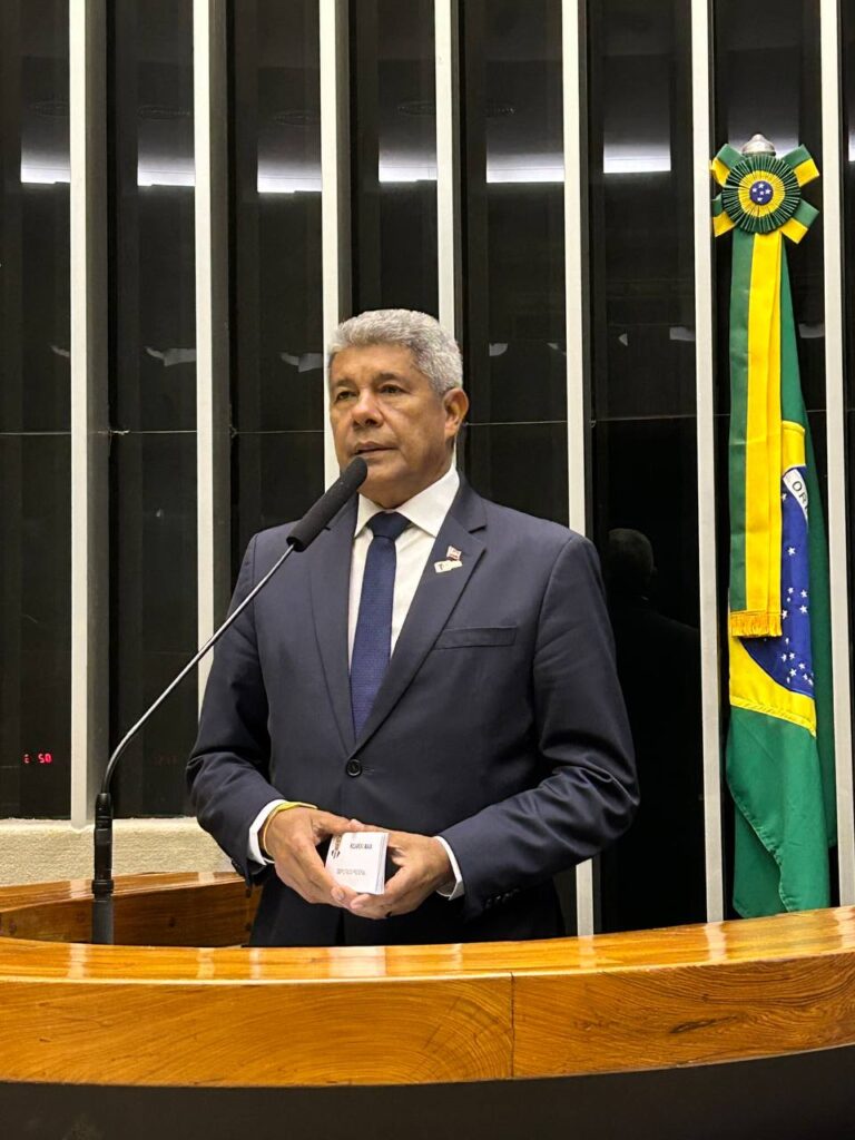 O governador da Bahia, Jerônimo Rodrigues, participou nesta quarta-feira (17) da sessão solene em homenagem aos 192 anos de emancipação política de Feira de Santana, realizada no Plenário da Câmara dos Deputados.