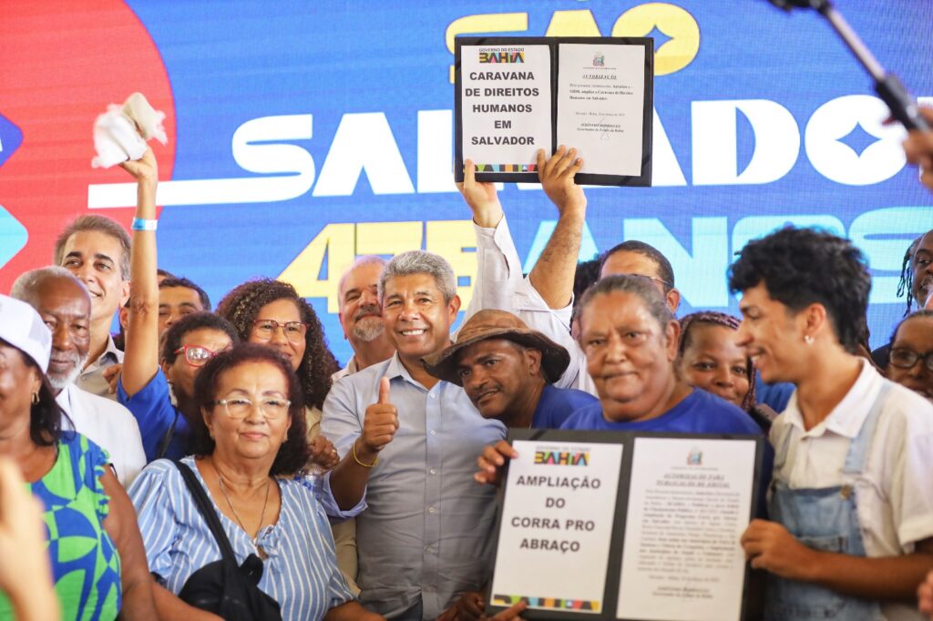 O novo edital para ampliação do programa Corra pro Abraço, com investimento de R$ 54,8 milhões, foi lançado durante a abertura da 1ª edição de 2025 da Caravana de Direitos Humanos, no Centro Histórico de Salvador, nesta quarta-feira (26). A iniciativa integra as ações em comemoração ao aniversário da capital baiana e aconteceu no foyer da Faculdade de Medicina da UFBA, no Terreiro de Jesus.