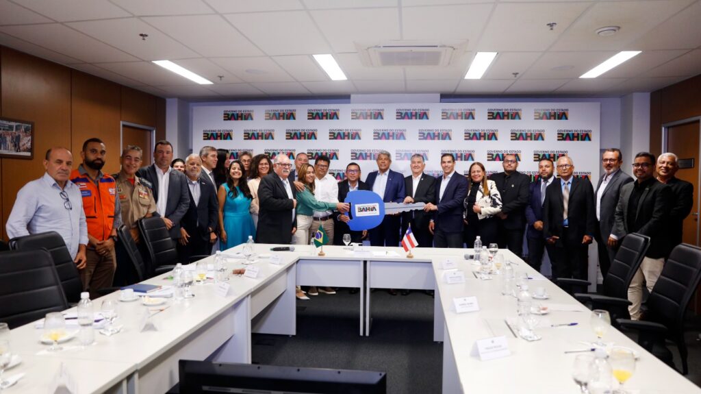 O governador Jerônimo Rodrigues recebeu na tarde desta terça-feira (21), no Centro de Operações e Inteligência (COI), em Salvador, o prefeito Candinho, de Itambé. Localizado no médio sudoeste baiano, o município é um dos afetados pelas chuvas intensas e já teve a situação de emergência reconhecida pela Defesa Civil do Estado. Durante o encontro, que também reuniu secretários estaduais, foi entregue pela Secretaria da Saúde (Sesab) um veículo administrativo para auxiliar a população nas demandas das enchentes e discutidas ações para enfrentamento às chuvas.