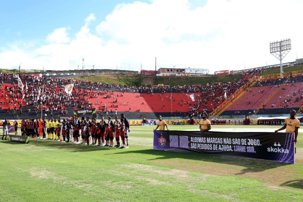 O futebol baiano entrou em campo neste sábado (10) com uma mensagem que vai além do esporte. Durante a abertura do Campeonato Baiano de Futebol 2026, o Governo do Estado lançou uma campanha pelo fim da violência contra a mulher, utilizando a visibilidade do Baianão para ampliar a conscientização e incentivar a denúncia de casos de violência de gênero. A iniciativa é da Secretaria de Políticas para as Mulheres (SPM), em parceria com o Instituto de Radiodifusão Educativa da Bahia (Irdeb), e marcou a partida entre Vitória e Atlético de Alagoinhas, no Barradão, em Salvador.