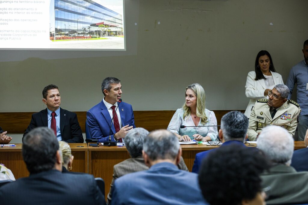 A apresentação, no Plenarinho da ALBA, nesta quarta-feira (20.08), teve as participações das cúpulas das Polícias Militar e Civil, deputados e deputadas de todos os partidos. “Queremos pautar a votação dos projetos o mais rápido possível. O que pudermos contribuir, nós vamos contribuir. O problema da segurança atinge a todos nós, ninguém está livre”, afirmou a chefe do Legislativo. Ela elogiou a participação de parlamentares no debate após a exposição dos projetos: “vimos aqui um time de deputadas e deputados comprometidos com a Bahia e com a vida”.