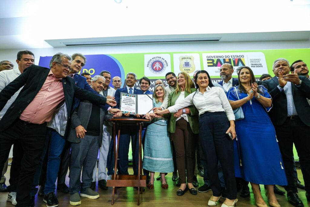 Também foi sancionada a lei que cria novos comandos regionais, unidades, centros estratégicos e cargos para a Polícia Militar, promovendo reorganização territorial e adequações administrativas para ampliar a capacidade operacional e de gestão. Na PM serão criados três comandos regionais – Jequié, Irecê e Alagoinhas, 13 batalhões e oito Companhias Independentes, com um efetivo de 47 mil 194 policiais. O impacto orçamentário é estimado em R$ 14,2 milhões em 2025 e R$ 24,3 milhões por ano a partir 2026.