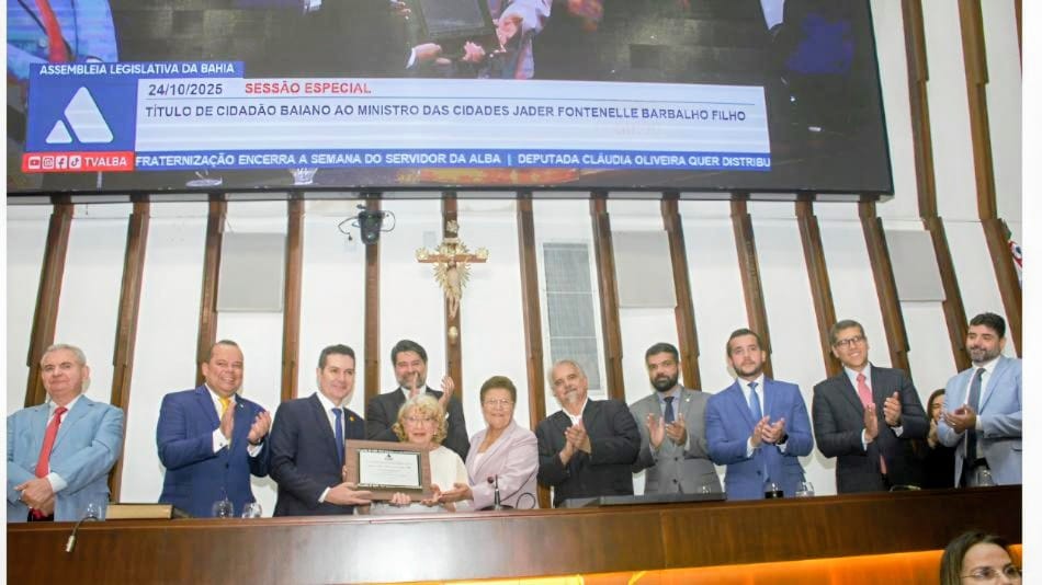 O ministro das Cidades, Jader Barbalho Filho, recebeu nesta sexta-feira (24) o Título de Cidadão Baiano, durante uma sessão especial realizada no plenário da Assembleia Legislativa da Bahia (ALBA). A homenagem, proposta pela deputada Maria del Carmen (PT), reconhece as contribuições do ministro para o desenvolvimento urbano do país, com destaque para os investimentos realizados na Bahia.