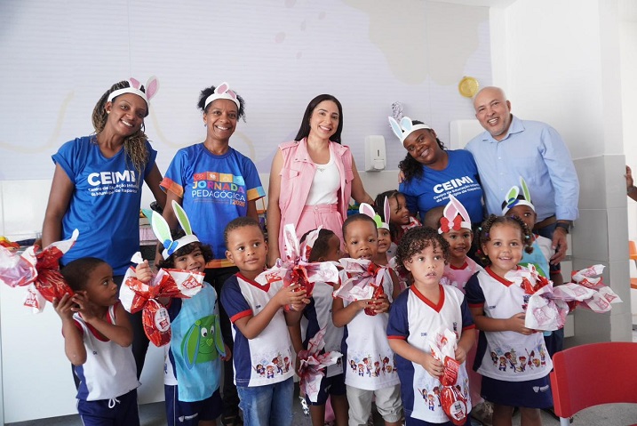 Os ovos de chocolate foram distribuídos pelo prefeito Zezinho Oliveira, juntamente com a secretária de Educação, Larissa Oliveira, e a subsecretária de Educação, Cacilda Souza. Durante a ação, as autoridades acompanharam de perto o momento junto aos estudantes e destacaram a importância da iniciativa no ambiente escolar. “Atividades como esta fortalecem a relação entre a gestão e a comunidade escolar, além de proporcionar experiências que contribuem para o desenvolvimento das crianças e para um ambiente mais acolhedor dentro das unidades”, afirmou o prefeito.