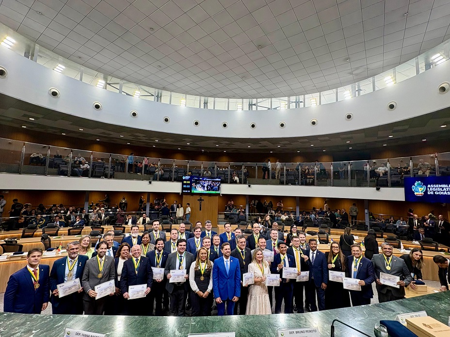 Deputados foram agraciados com a Medalha do Mérito Legislativo Pedro Ludovico Teixeira em sessão solene nacional que reconheceu o protagonismo no fortalecimento do Legislativo estadual