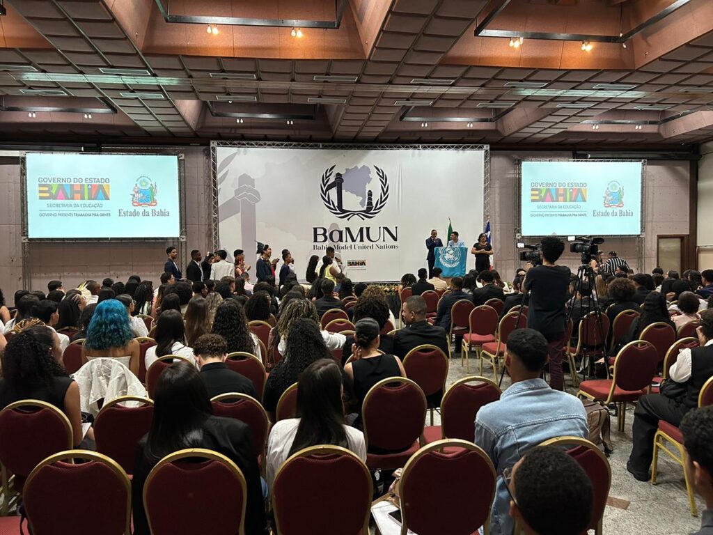 A capital baiana recebe, nesta terça-feira (2), 360 estudantes e egressos da rede estadual para a edição 2025 da Bahia Model United Nations (BaMUN), no Bahia Fiesta Hotel. A iniciativa, promovida pela Secretaria da Educação do Estado da Bahia (SEC), recria o funcionamento dos comitês da Organização das Nações Unidas, oferecendo aos jovens a experiência de representar países e debater questões internacionais. A atividade, que segue até quinta-feira (4), integra o calendário educacional e reforça o compromisso da rede com ações formativas que ampliam a participação estudantil.