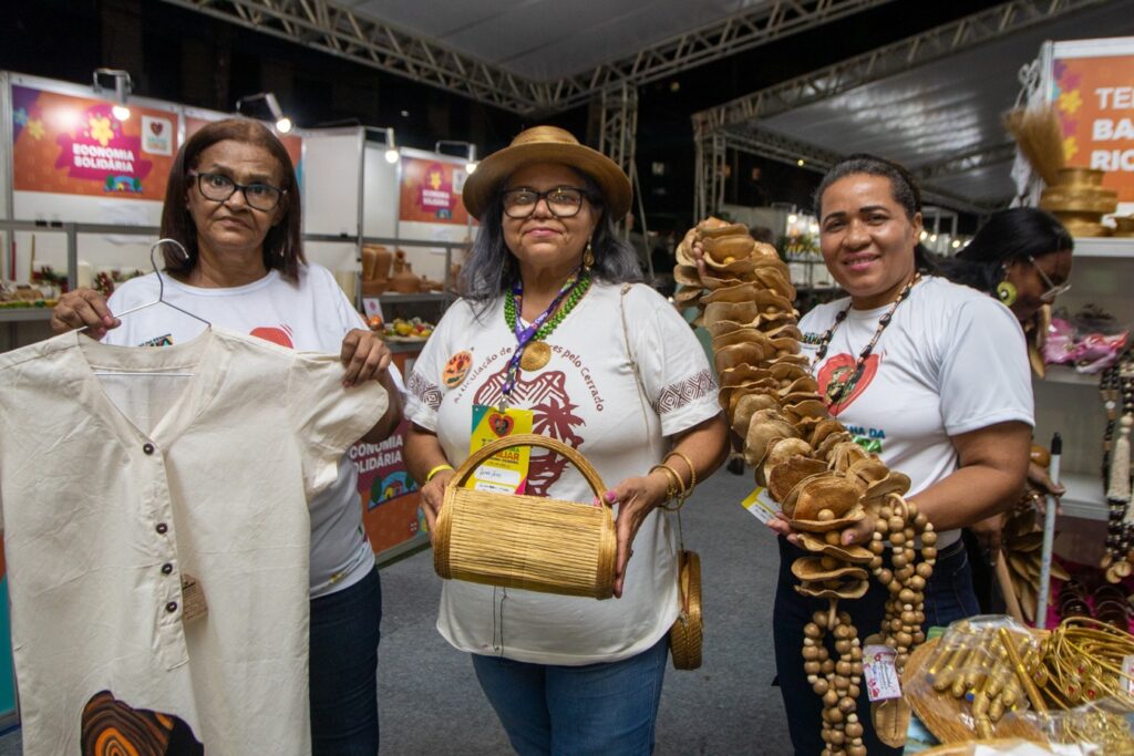 A expositora e Aurenilde Aires, conhecida como Áurea, do grupo de Mulheres Associação Pró-cultura, de Formosa do Rio Preto, do Cerrado baiano, que trabalha com produtos feitos com capim dourado e buriti, conta o que o público vai encontrar no estande do território Bacia do Rio Grande. “Nós trouxemos de comunidades tradicionais o trabalho das mulheres geraizeiras. Trouxemos biojoias, bolsas, suplat, jarros, canetas ecologicamente corretas, tiaras e anéis, tudo usando o capim dourado e também algumas peças usando fibras de buriti, também do Cerrado. Temos também, do mesmo território, o material de mesa posta, que usa outras cascas e sementes nativas do Cerrado. lsso pra nós é importante, é o protagonismo feminino, é resistência, porque o que a gente mais quer é que tenhamos o Cerrado em pé, porque tem cara de mulher”.