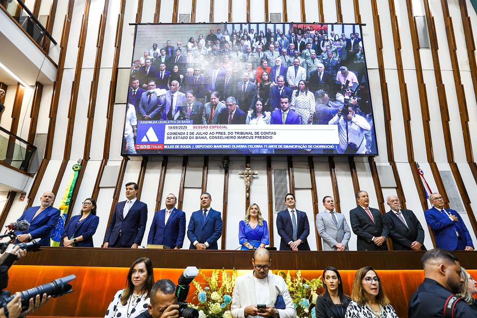 “Alguém cuja trajetória profissional e pessoal está profundamente ligada à própria caminhada da Assembleia Legislativa da Bahia”. Assim a presidente da ALBA, deputada Ivana Bastos, traçou o perfil do presidente do Tribunal de Contas do Estado (TCE), conselheiro Marcus Presidio. Em seu discurso, na sessão especial de entrega da comenda 2 de Julho ao conselheiro, nesta quinta-feira (18.09), Ivana destacou a iniciativa do deputado Marcelinho Veiga (União), proponente da comenda. “Marcelinho oferece hoje um presente ao povo baiano ao reconhecer a história de um homem que ajudou a construir e modernizar as nossas instituições”, elogiou.